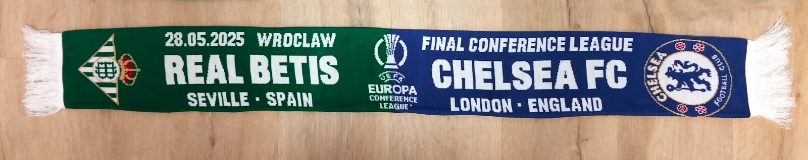 Szalik „Betis" Hiszpania – „Chelsea ” Londyn. Warszawa. 28 maja 2025 r. Wrocław. Final-Liga Konferencyjna. Nowe.