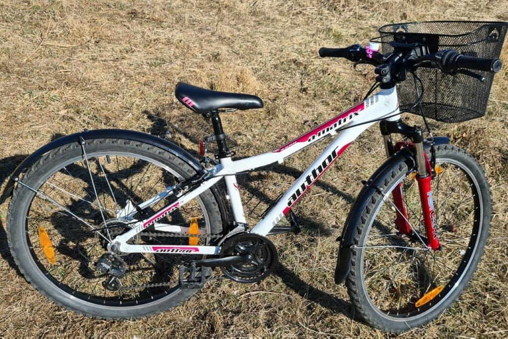 Młodzieżowy rower Author A-Matrix 26 z roku 2017 w kolorze biało-czerwonym. Rama aluminiowa 13,5 cala, koła 26 cali.